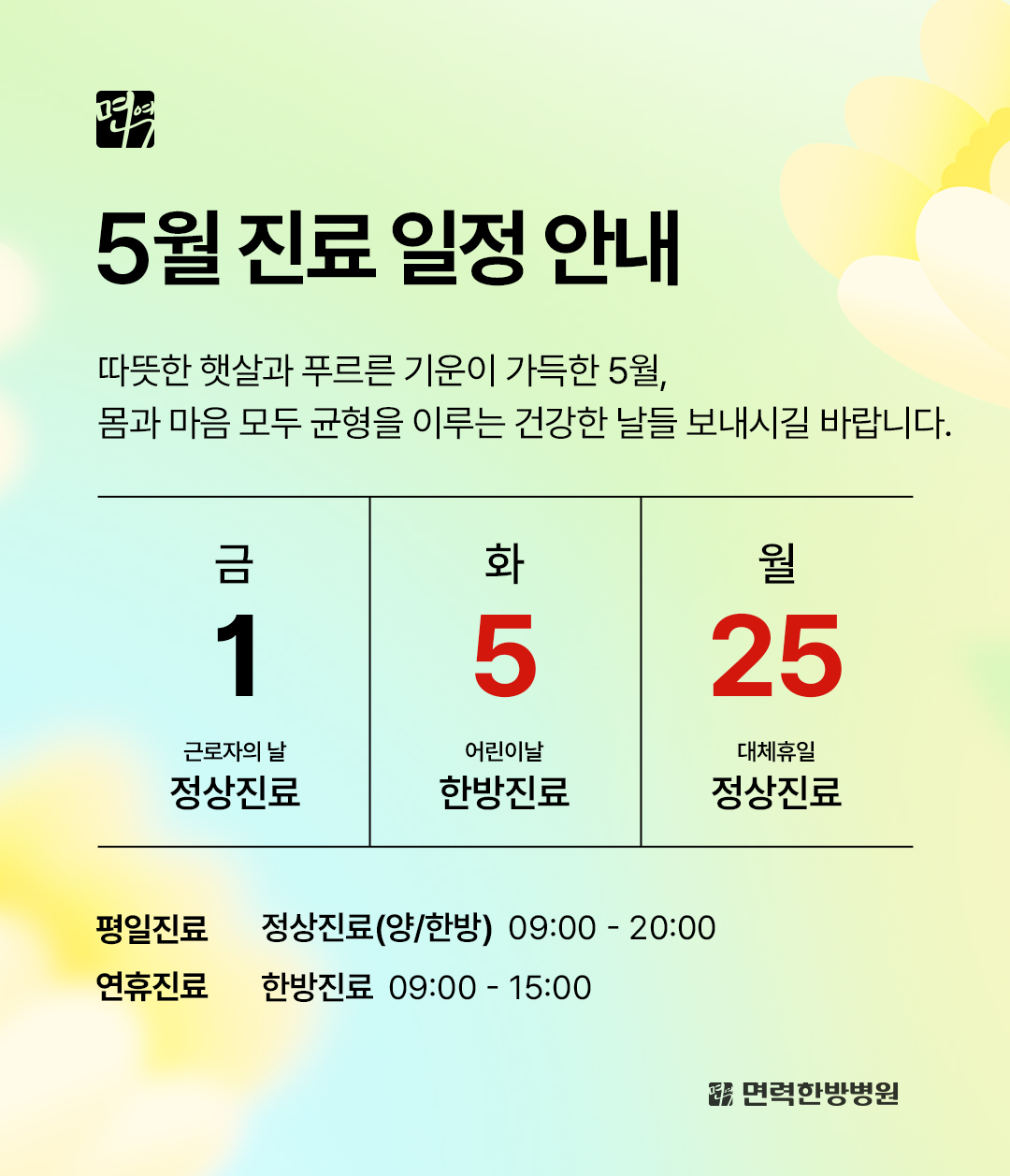 푸르른 5월, 따뜻한 기운이 가득한 계절입니다.일교차와 활동량 증가로 몸의 균형이 흐트러지기 쉬운 시기입니다.