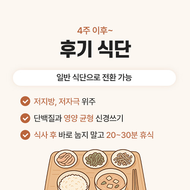 수술 중 불가피하게 조직손상이 있기 때문에, 수술 후 집중 회복재활 및 영양관리가 필요합니다. 이후 항암 방사선 치료가 있다면, 더욱 회복 커디션 관리가 필수적입니다.