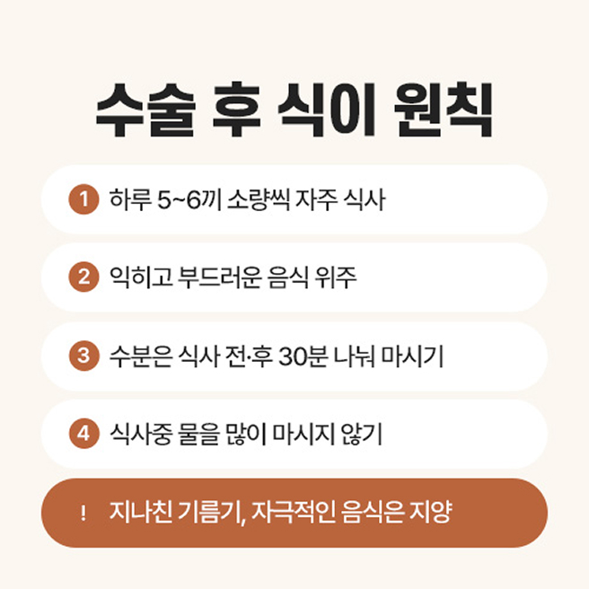 수술 중 불가피하게 조직손상이 있기 때문에, 수술 후 집중 회복재활 및 영양관리가 필요합니다. 이후 항암 방사선 치료가 있다면, 더욱 회복 커디션 관리가 필수적입니다.