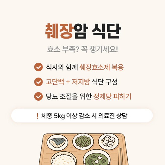 적절한 영양을 제공하여 치료 기간 동안 부작용을 줄이고 항암 치료로 손상된 조직을 회복하며, 영양 상태와 적정 체중을 유지할 수 있도록 돕는 식사를 제공합니다.