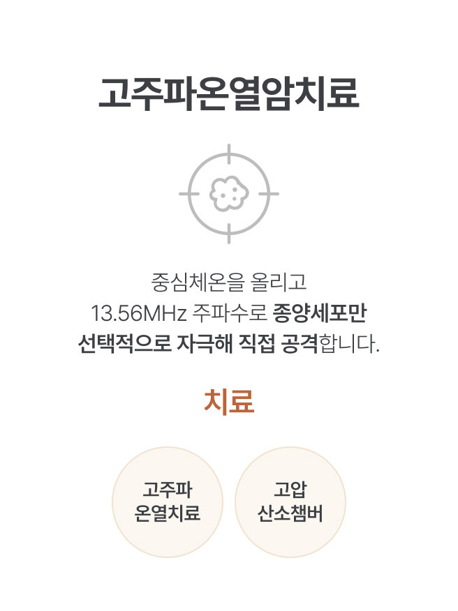 고온 환경에서 암 조직은 더 민감해지고, 면역세포가 활성화되어 종양 미세환경에서 항암 면역 반응이 강화됩니다. 항암제 투여와 고주파온열 치료를 병행할경우, 생존기간이 유의미하게 증가했다는 연구결과가 존재합니다.